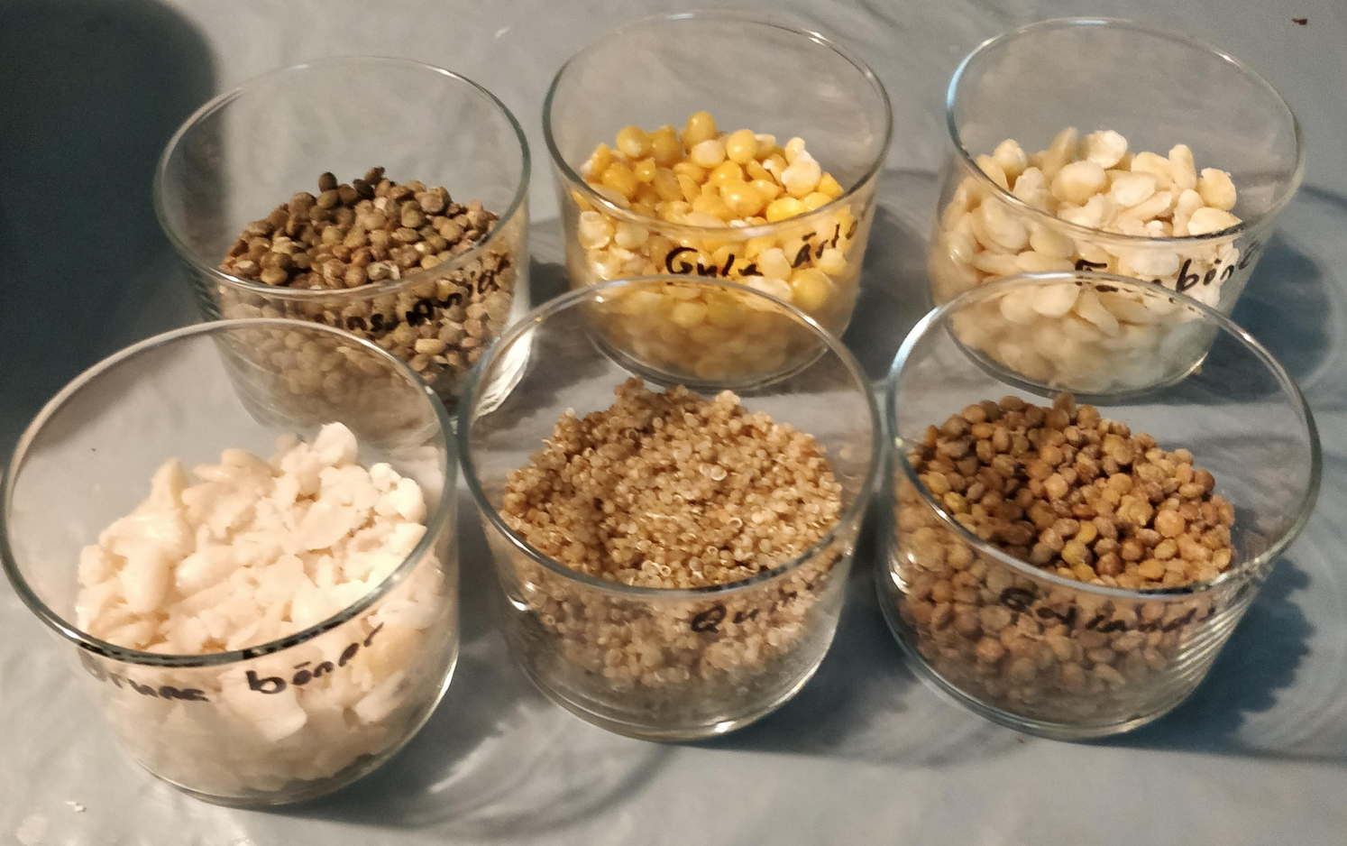 • Material: Legumes from FRAM, Gothenburg. 125 g dry legumes/grains each.